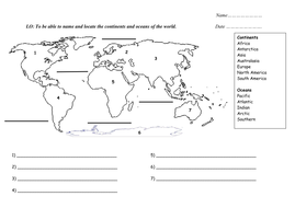 The seven continents of the world are numbered and students can fill in the continent's name in the corresponding blank space. The continent blank world map to label continents and oceans. Map has labels for each of the seven continents and four oceans. Continent student book a cover page label by number student maps and pages picturing an outline of each of. I hope these continent and ocean maps were useful.
